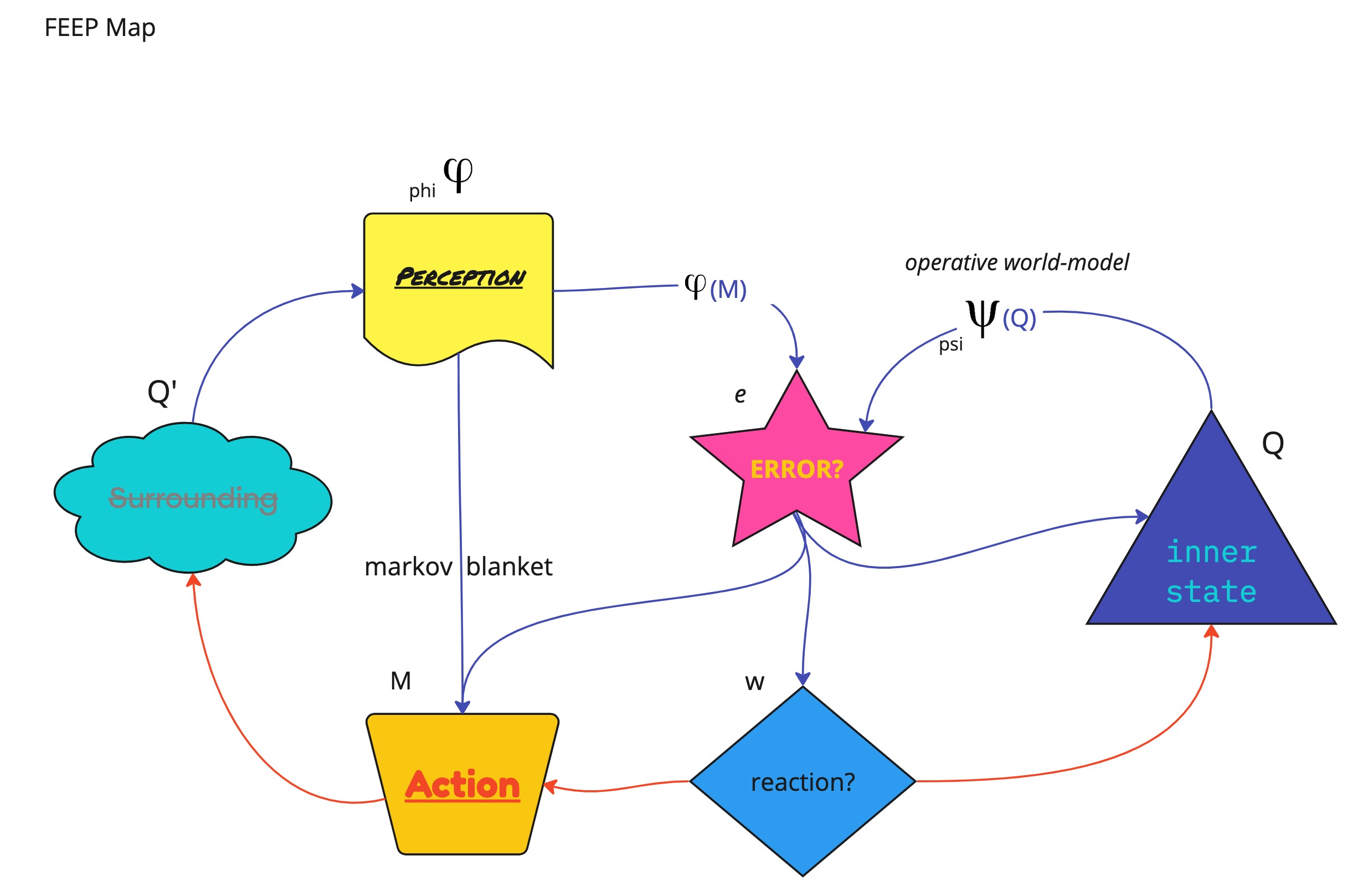 The environment (Q’) is crossed out on the map because the system only connects to it indirectly. We only know by hearsay what’s out there, and that’s sufficient for the system’s survival. Absolute knowledge of an objective external truth — if that were necessary to succeed — FEEP Coaching couldn’t help. (Read Markus Gabriel’s Why the World Does Not Exist.) The portion of the environment needed for system efficiency is filtered by perception, the second part of the Markov blanket. As complexity grows, a system can adapt its perception over time — an adult man perceives his environment differently than a ten-year-old boy. A junior developer forms a different mental image of a task than a senior full-stack expert. But a coherent model of the environment is vital (and systems do everything to maintain it).